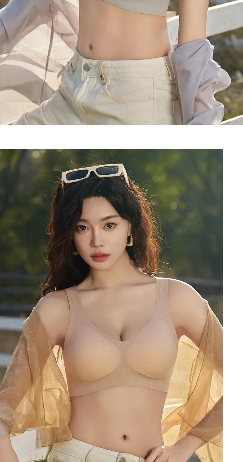 Wireless Full Cup Soft Support Bra Seamless Underwear for Women Fixed Cup Sports Vest Large Size Bra Intimate Apparel